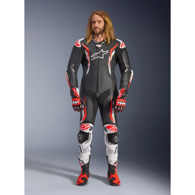 GP Tech V5 1PC Leather Combinaison 46 Black White Red Fluo