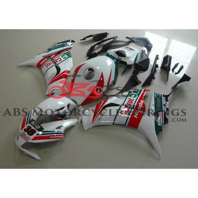 White,Red and Green CastrolFairing Kit for a2012, 2013, 2014, 2015 & 2016Honda CBR1000RR motorcycle.Bike Model: Honda CBR1000RRYear:2012-2016Mold Type:OEM-Grade Injection MoldingPerfect 100% OEM FitmentPre-Drilled Bolt Holes for Easy Installation7-Step Pro