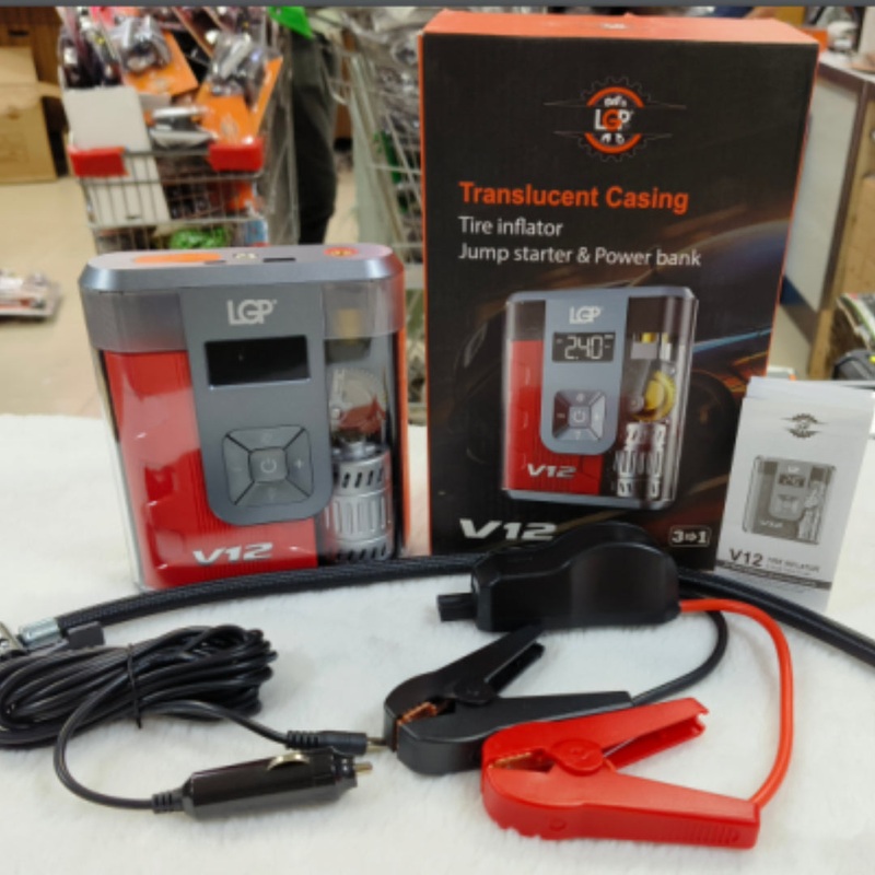 LGP V12 Tyre Inflator with Battery Starter2-in-1 Functionality: Combines a high-performance tyre inflator and a powerful battery starter in one compact deviceperfect for emergency roadside situations.V12 Power Supply: Strong V12 output ensures rapid inflat